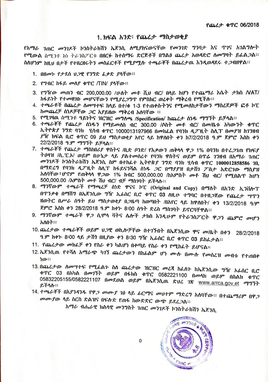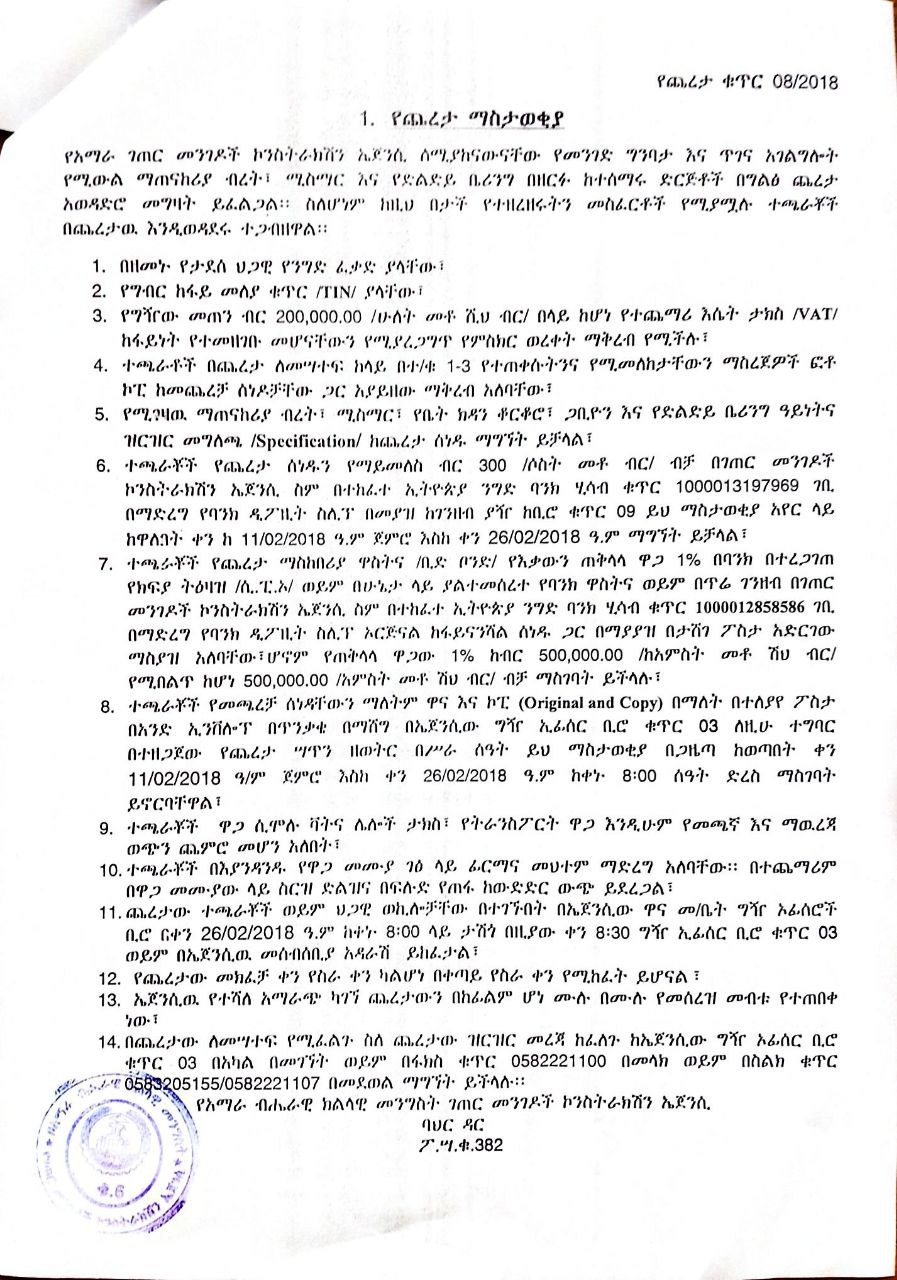 ዝርዝሩንም ከጨረታ ማስታወቂያው መመልከት ይቻላል።