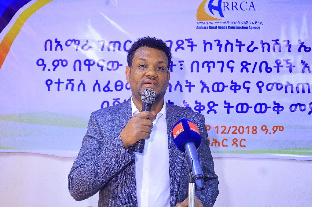 የአማራ ገጠር መንገዶች ኮንስትራክስን ኤጀንሲ በ2017 ዓ.ም የተሻለ ለፈፀሙ እውቅና የመስጠት እና የ2018 በጀት ዓመት ዕቅድ ትውውቅ መስከረም 12/2018 ዓ.ም በተካሄደበት ወቅት በመድረኩ የተገኙት የአብክመ መንገድ ቢሮ ኃላፊ ጋሻው አወቀ (ዶ/ር) ባስተላለፋት መልዕክት ክልሉ ከ2018 በጀት ዓመት ጀምሮ ተግባራዊ የሚደረግ የ25 ዓመት አሻጋሪ እና የ5 ዓመት ስትራቴጅክ ዕቅድ አዘጋጅቶ ወደ ስራ የተገባ መሆኑን ጠቅሰው ኤጀንሲው በአሻጋሪ እና በ5 ዓመቱ ስትራቴጅክ ዕቅድ የተቀመጡ የመንገድ ልማት ግቦች እንዲሳኩ የበኩሉን ኃላፊነት በአግባቡ ለመወጣት በትጋትና በቁጭት መስራት የሚጠበቅበት መሆኑን ገልፀዋል፡፡