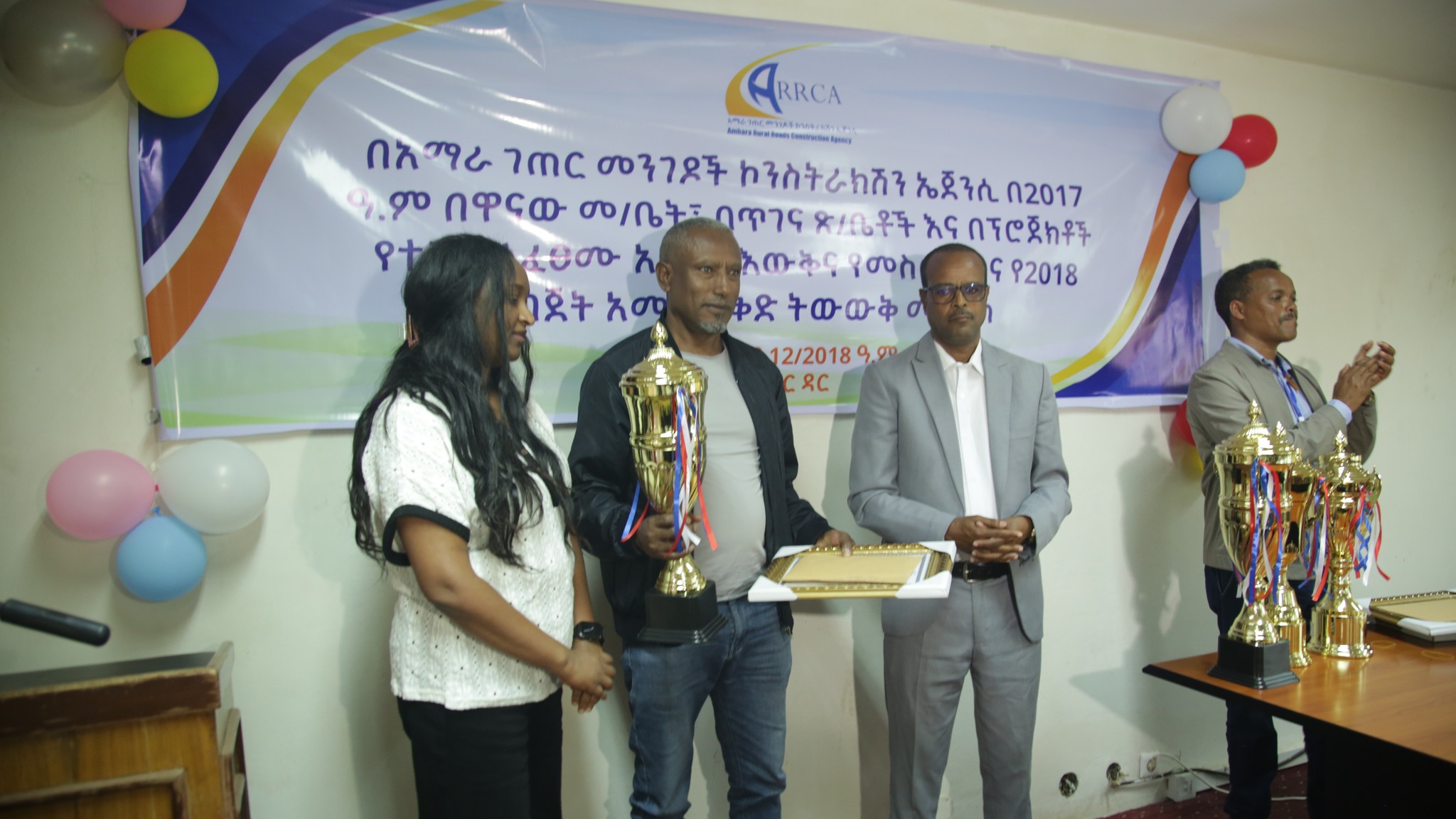 በዕውቅና እና በዕቅድ ትዉውቅ መድረኩ በ2017 ዓ.ም የተሻለ አፈፃፀም ላስመዘገቡ የዋናው መ/ቤት የሥራ ሂደቶች፣ የገጠር መንገድ ጥገና ጽ/ቤቶች እና የመንገድ ሥራ ኘሮጀክቶች ዕውቅና ተሰጥቷል፡፡ ከዋናው መ/ቤት የህግ አገልግሎት ክፍል ፣ የግንባታ ግብዓት አቅርቦት እና ንብረት አስተዳደር ፣ የዕቅድ ዝግጅት ፣ክትትል ና ግምገማ ደጋፊ የሥራ ሂደት፣ ከስድስቱ የገጠር መንገድ ጥገና ጽ/ቤቶች የጐጃም ገጠር መንገድ ጥገና ጽ/ቤት፣ የወልዲያ ገጠር መንገድ ጥገና ጽ/ቤት እና የሰሜን ሸዋ ገጠር መንገድ ጥገና ጽ/ቤት፣ ከ38 የመንገድ እና ድልድይ ኘሮጀክቶች የአምባጊዮርጊስ-ስላሬ፣ የጭምት- ማይ አንገታም ሎት-1 እና የባቲ-ጋራሮ-ኤላ የመንገድ ስራ ኘሮጀክቶች ከ1ኛ እስከ 3ኛ ደረጃ በመውጣት የዕውቅና የምስክር ወረቀት እና የዋንጫ ሽልማት ተበርክቶላቸዋል፡፡